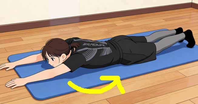 うつ伏せで腕をゆっくり動かし、肩甲骨を寄せる意識で行います。